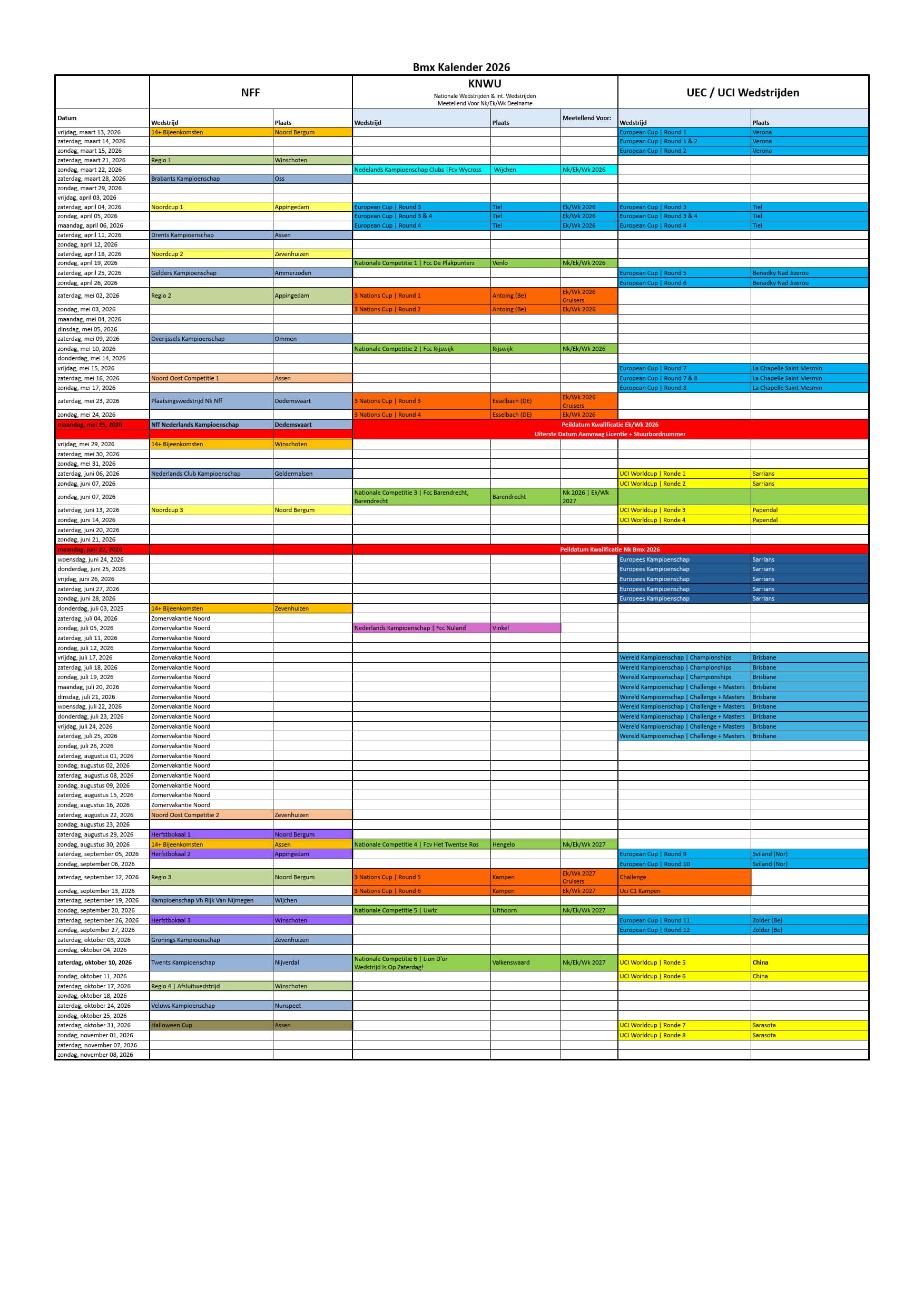 Onderstaand de wedstrijdkalender voor 2026